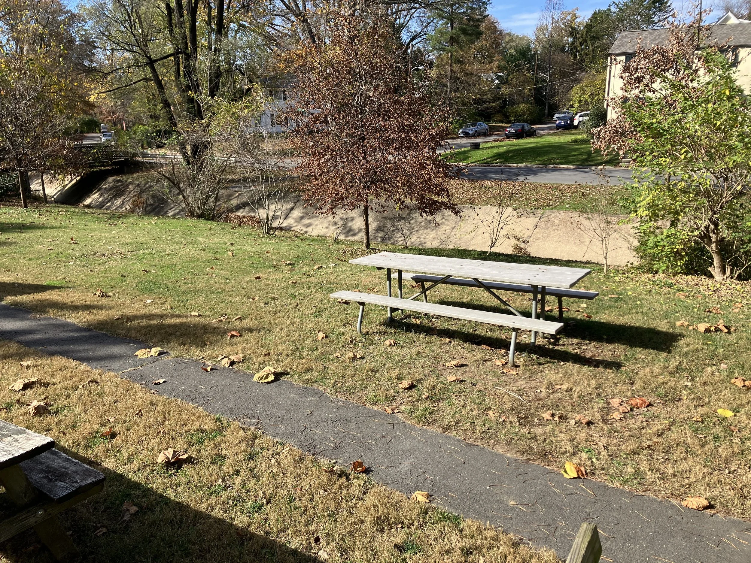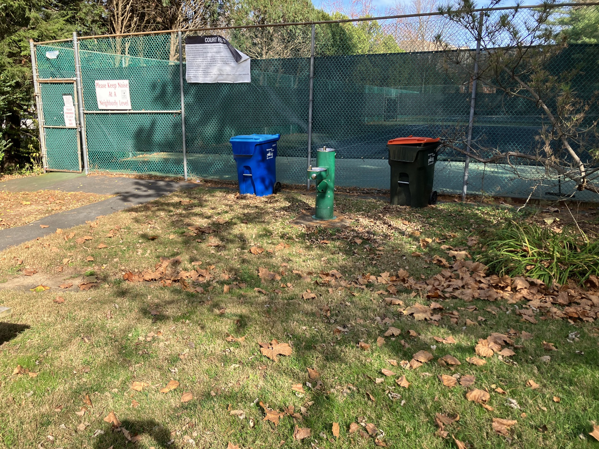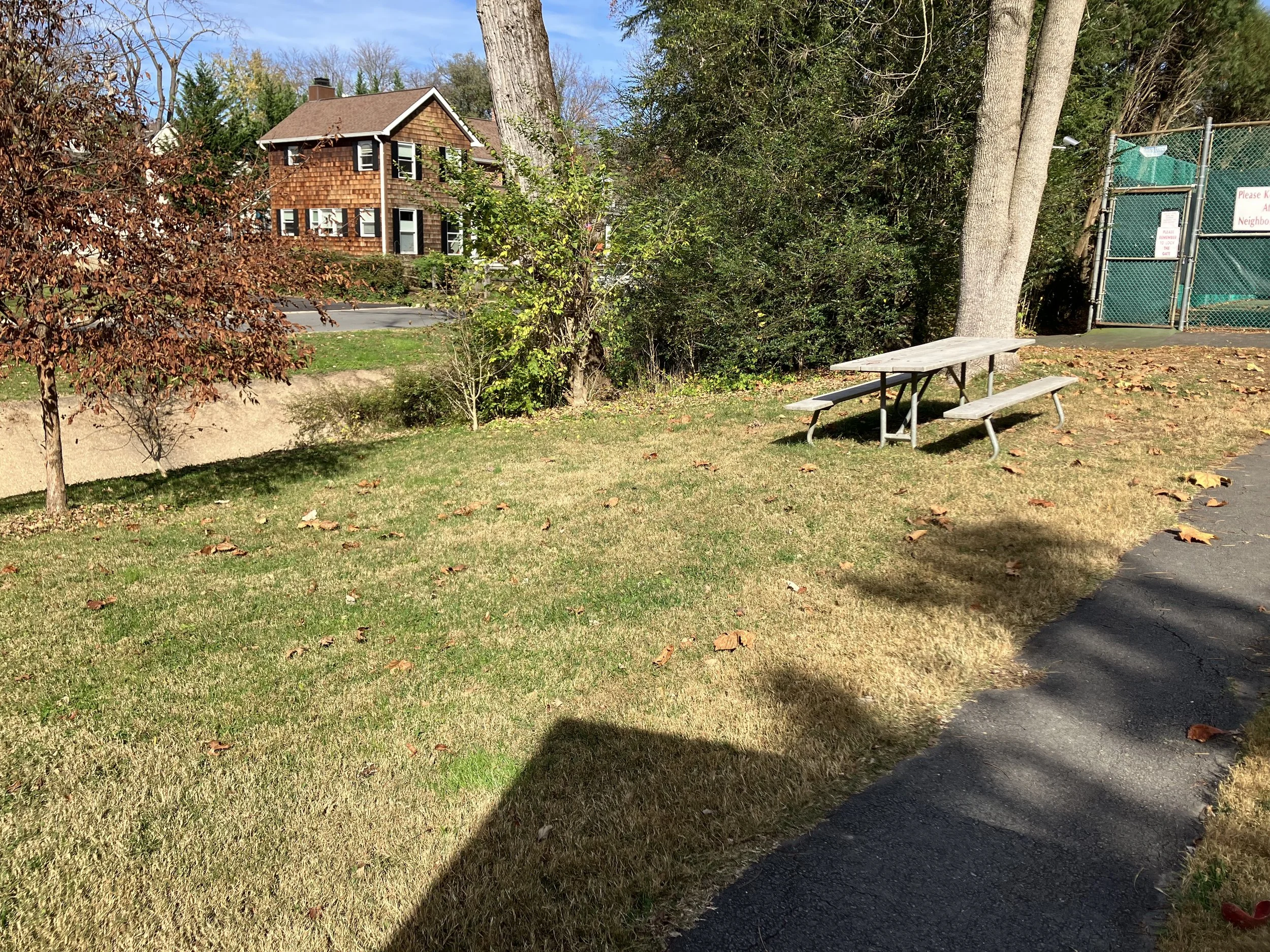 Thanks to funding provided by the Montgomery County Water Quality Protection Fund, over 600 native grasses, flowers, shrubs and trees will be installed in the upper parking lot. In addition, the asphalt channel running along the front of the tennis courts will be replaced by a planted rock swale that will slow down run-off from the tennis court exterior and allow it to soak into the ground.