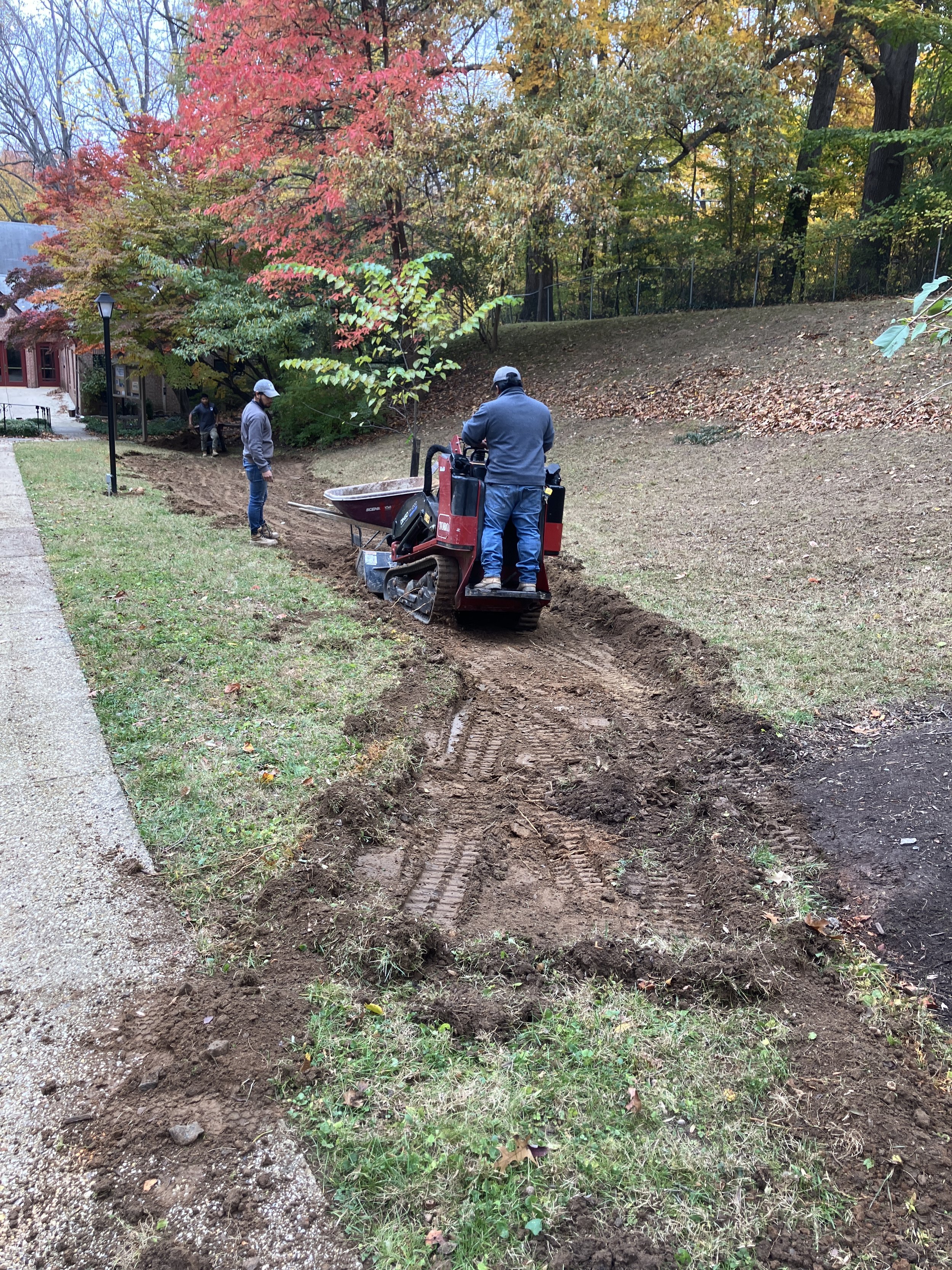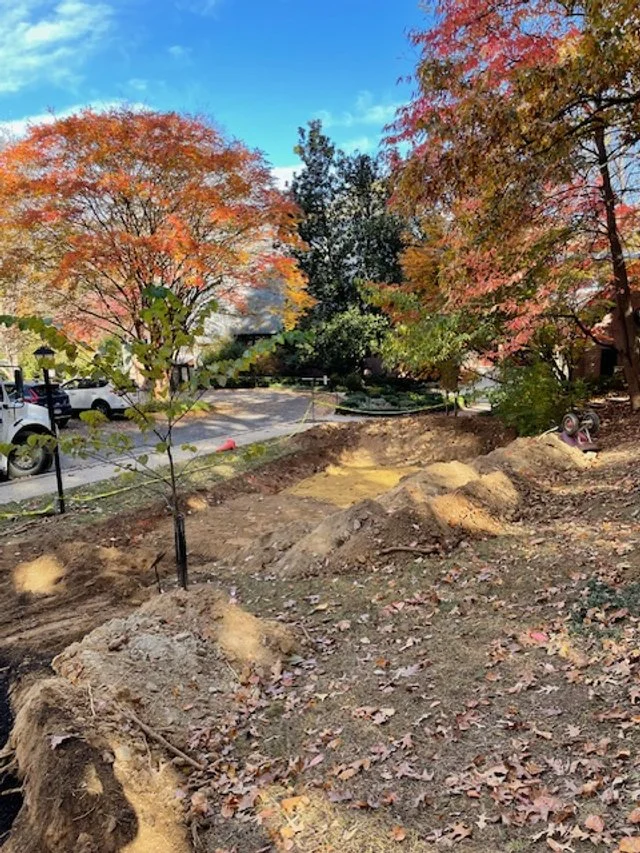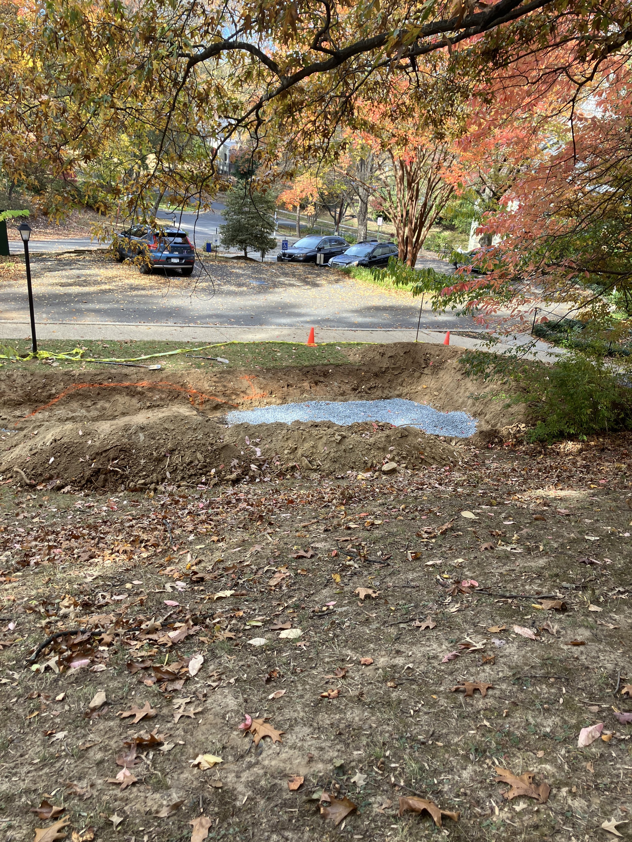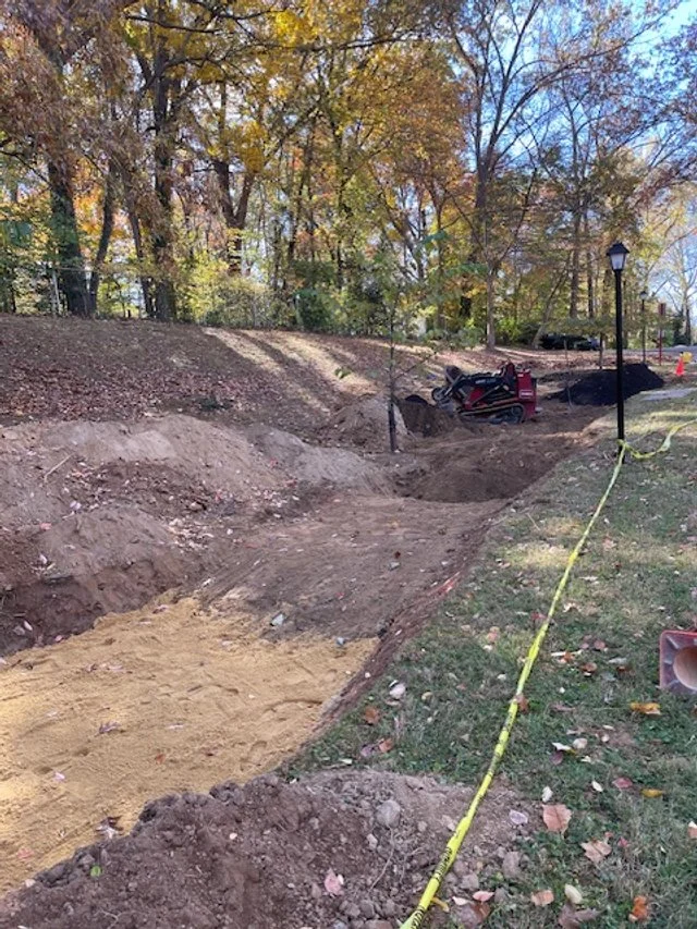 St. Dunstan’s Church in Bethesda is going native - with native plants and a rain garden! In the spring of 2025, LFWA was awarded a $75,000 grant from the grant from the Montgomery County Department of Environment Protection to install storm water management on the very hilly St. Dunstan’s Church campus in Bethesda. The grant funds a rain garden to capture and treat rain water flowing from the parking lot and adjacent grass hill, as well as extensive native planting to replace the grass on the steep hill adjacent to the new rain garden. A trench drain installed across the driveway will send water from the parking lot and paved surfaces to the rain garden via a vegetated swale.