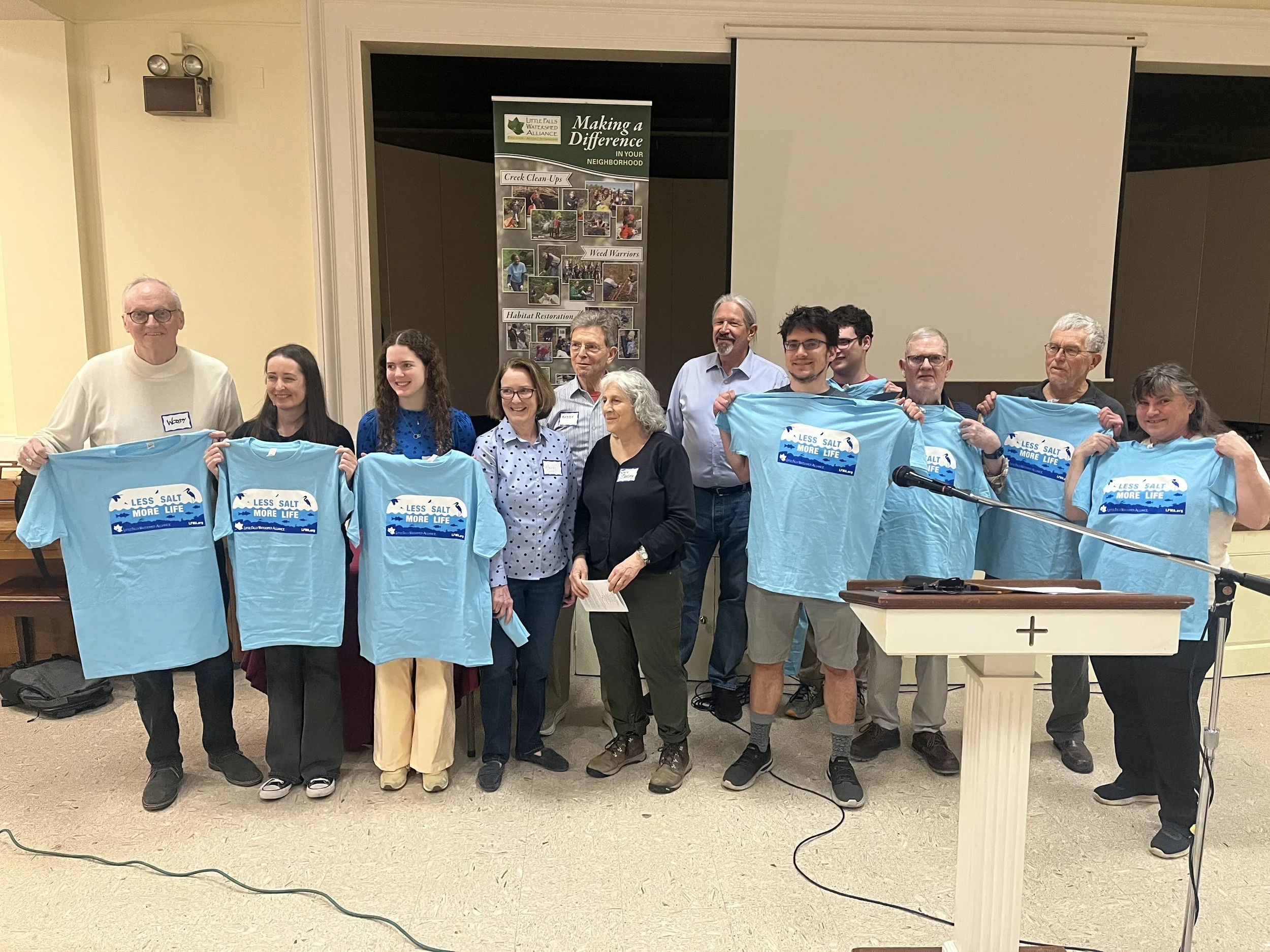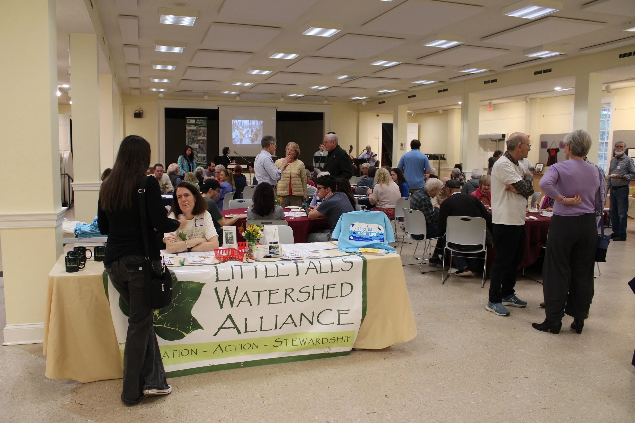 Thank you to David Batson and friends for their music. As the leader of the Little Falls Ramblers, David has been entertaining at LFWA events since 2011 when we celebrated Norwood park with a party and clean-up. Thank you also to Maurie Kathan for organizing the food set-up, serving and clean-up. Not only is Maurie competent in all things food, but they are a former board member. Thank you to David Kathan for his opening slide show. Thank you to our Executive Director Sarah Morse for her baking talents and providing the yummy desserts. Woody Stanley made the Salt movie (with the help of AI) which will be available for public viewing on our website soon.