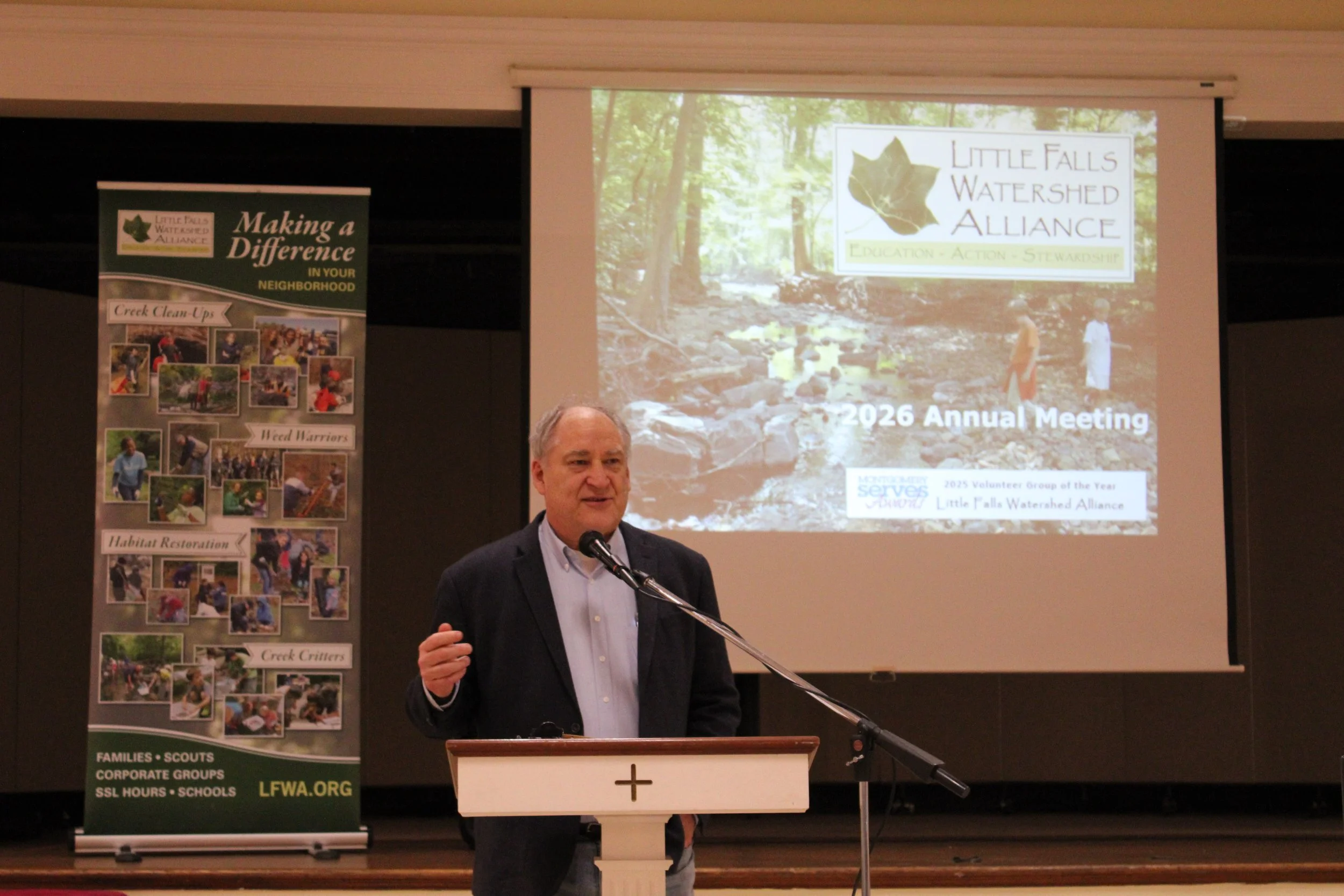 Special volunteer recognition went to Jack Deutsch and Bobby Pestronk for their effort in habitat restoration and water quality monitoring. Our salt monitoring team was recognized for their efforts this year in testing our local waterways for road salt pollution. County Executive Marc Elrich, in his last term, was thanked for his contributions to the environment.
