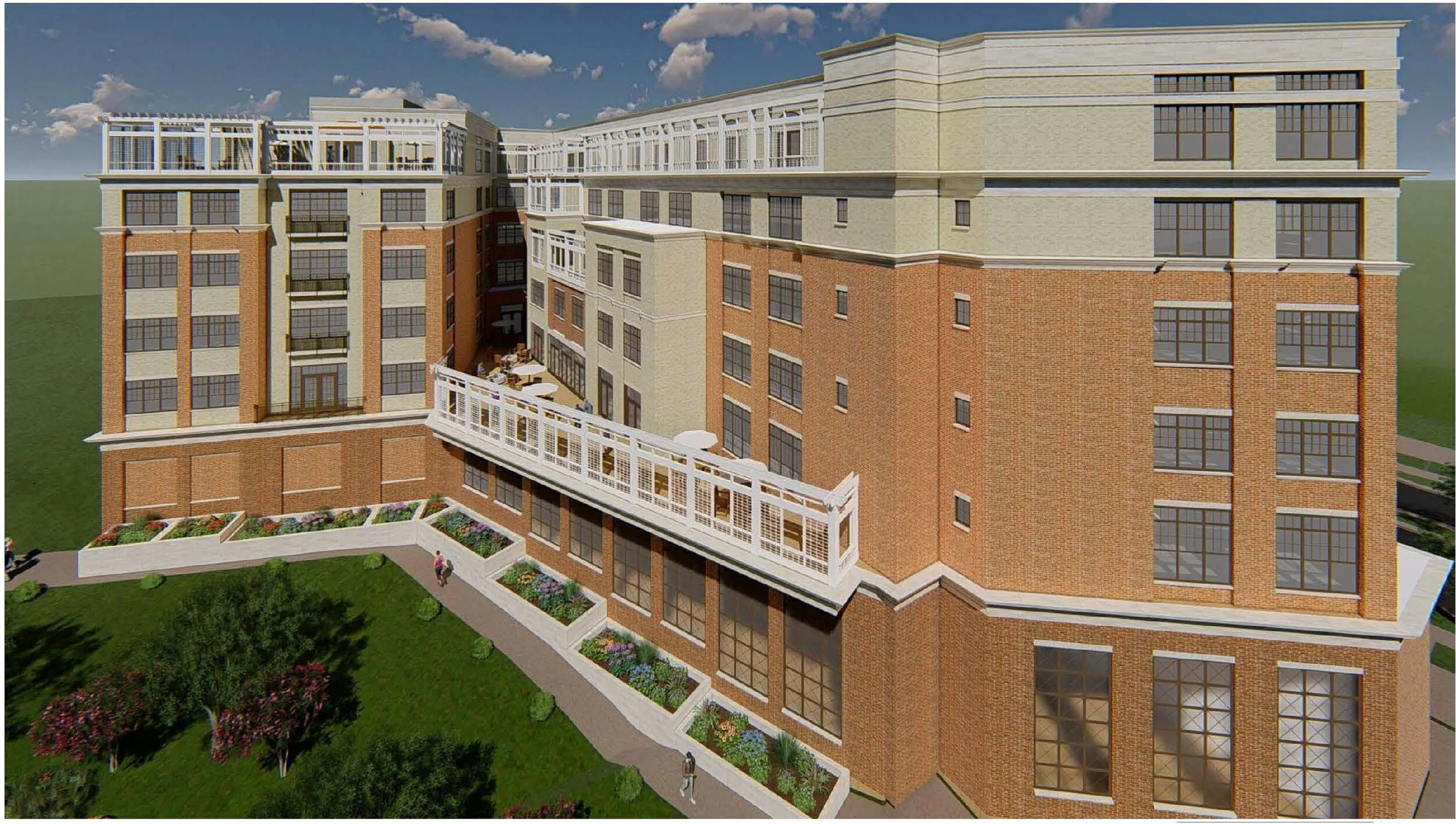 On Thursday, April 23, Kensington Senior Development LLC publicly presented their plans for redeveloping the Westwood Center II, located at the corner of River and Ridgefield Roads, into a Senior Living Community. The building will cover the entire 2.9 acre property. 112 assisted living suites are planned, along with the support services needed for the community. The back of the property will abut the Willett Branch and the building is designed to allow the residents to enjoy a view of the new park from patios and balconies located above the first floor. The first floor will primarily be a parking garage. There are no plans for access from the rear of the building to the park.